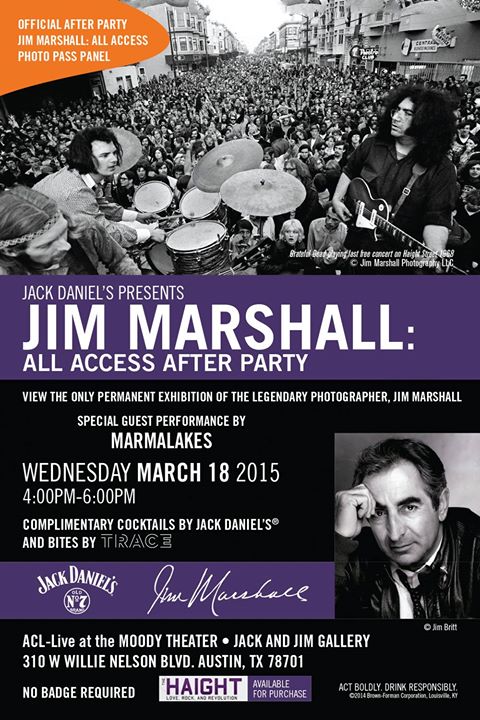 Jack Daniel’s invites you to join us for a special reception in the Jack & Jim Gallery at ACL Live, immediately following the SXSW panel “Jim Marshall: All Access Photo Pass”!