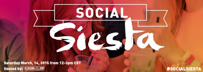 Social Siesta is hosted by Blogging4Jobs.com. Take a break, nurse your hangover, and kick back with a cocktail and light appetizers. Only wait-list available? Don’t despair because we’re adding more tickets as we lead up to the event. Attendees include those from the human capital industry (recruiters, HR vendors and HR pros), marketing and PR, technology entrepreneurs, and social media influencers. This event is limited to just 175 attendees. A special thank you to the sponsors, ExtendMyStaff & RevolutionHR. Use the hash tag #SocialSiesta and share with your friends.