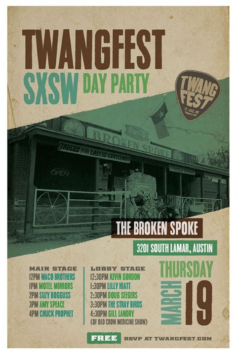 Twangfest SXSW Day Party at the Broken Spoke in Austin. Now in its 16th year, the Twangfest party is among the most anticipated afternoon events during the week-long South By Southwest gathering.